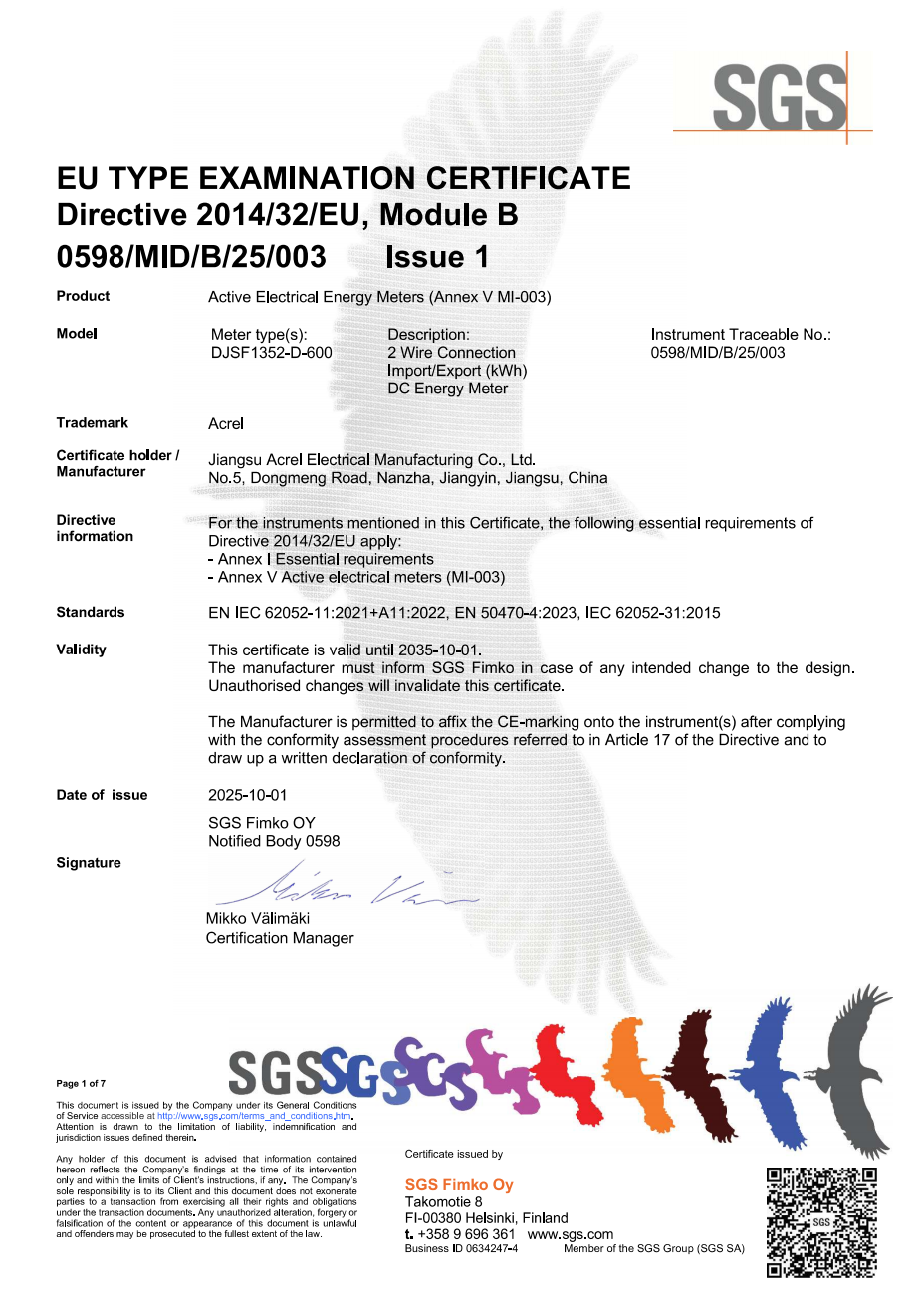 | DJSF1352-D-600 | DC Energy Meter(Maximum current 600A) |